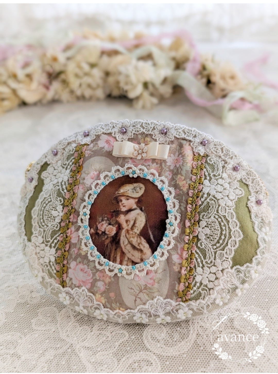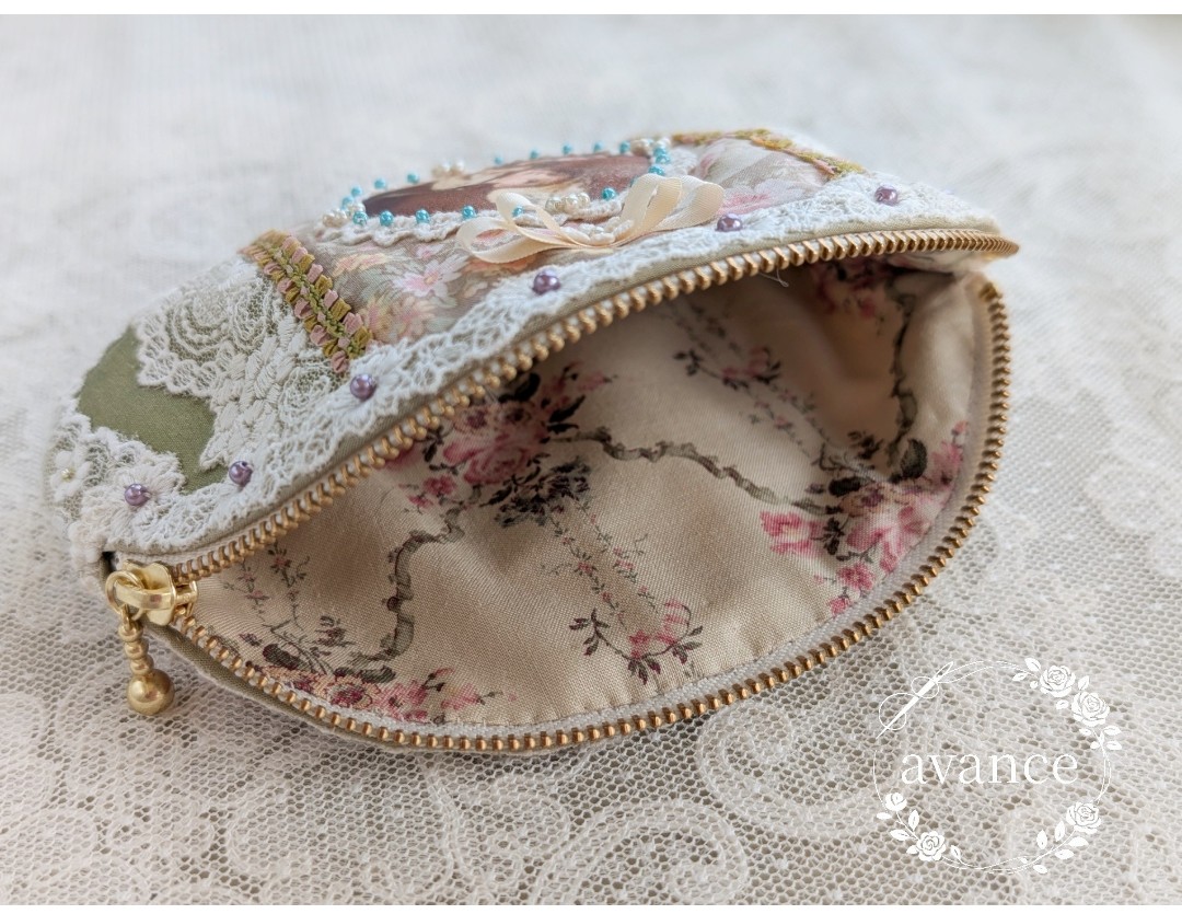 アンティークの肖像画を思わせるクラシカルな雰囲気の楕円ポーチが作れる手作りキットです。
